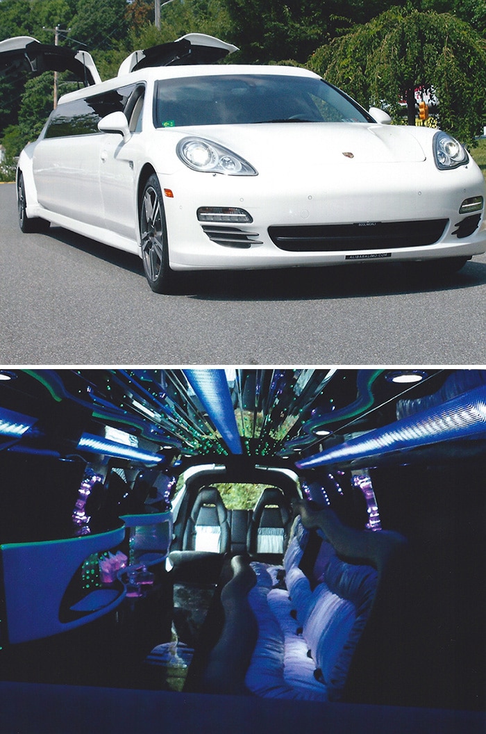 Αυτή η λιμουζίνα Corvette έχει «τεντωθεί», ώστε να μπορεί να μεταφέρει έως 10 επιβάτες. Είναι πλήρως εξοπλισμένη, έχει δεξαμενές με ψάρια, ένα ηλεκτρικό τζάκι και ένα DVD player με 4 επίπεδες οθόνες. Τι καλύτερο για βραδινή έξοδο!