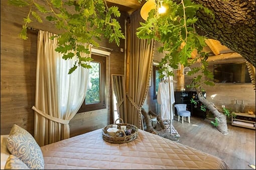 Σε μια φάρμα με ελαιόδεντρα και μποστάνια με βιολογικά προϊόντα, ένα υπέροχο ξύλινο δεντρόσπιτο είναι κρυμμένο ανάμεσα στις πευκοβελόνες. Οι οικοδεσπότες προσφέρουν πλούσιο πρωινό στο κρεββάτι αλλά και πλήρη γεύματα μαζί με βιολογικό κρασί, που περιλαμβάνονται στη τιμή. Οι επισκέπτες έχουν τη δυνατότητα να απολαύσουν δωρέαν μαθήματα yoga ή μασάζ.