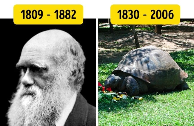 Η περίφημη χελώνα Γκαλαπάγκος γεννήθηκε γύρω στο 1830. Όταν ο σπουδαίος επιστήμονας πήρε την Χάριετ στην Αγγλία, ήταν στο μέγεθος μιας πλάκας. Με τα χρόνια, η χελώνα ζούσε σε διαφορετικά μέρη. Το 1987, η Χάριετ δόθηκε υπό την ευθύνη του Στιβ Ίργουιν, ο οποίος την φρόντισε μέχρι το θάνατο της από καρδιακή ανεπάρκεια το 2006. Μέχρι πρόσφατα, αυτό το καταπληκτικό πλάσμα μας προσέφερε την ευκαιρία να κοιτάξουμε τα μάτια κάποιου που είχε δει τον Τσαρλς Ντάργουιν προσωπικά!
