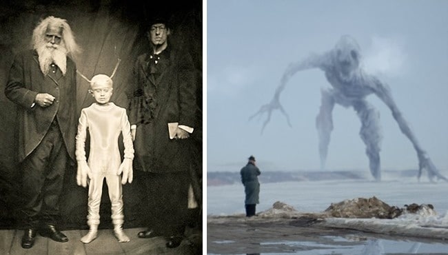 Για παράδειγμα, η παλιά εικόνα στα αριστερά λήφθηκε στη σύγχρονη εποχή για να δημιουργήσει μια χιουμοριστική άποψη της αμερικανικής ζωής στο δεύτερο μισό του 1800. Και η μυστηριώδης φωτογραφία στα δεξιά είναι ένα επεξεργασμένο κομμάτι της ψηφιακής τέχνης.