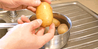 Κάντε μια τομή κατά μήκος της πατάτας, βράστε την σε ζεστό νερό και στην συνέχεια ξεπλύνετέ την με κρύο νερό. Τώρα μπορείτε εύκολο να αφαιρέσετε την φλούδα με τα χέρια σας.