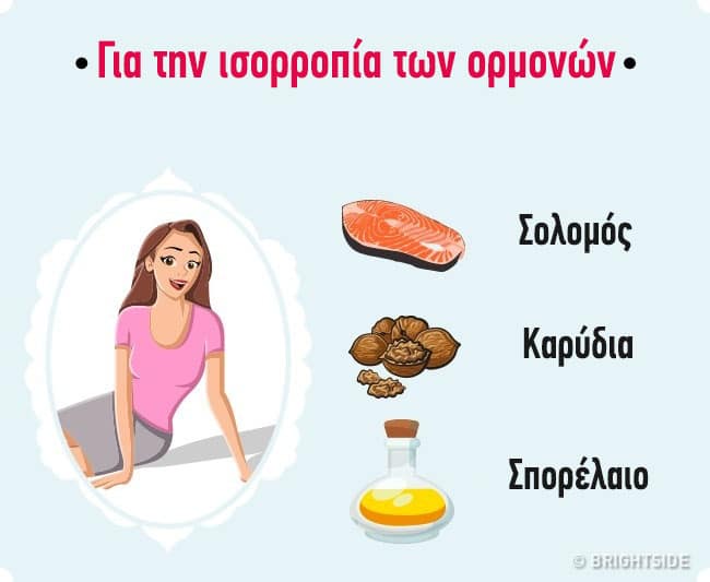 Μια μελέτη από την Κλινική του Κλίβελαντ έδειξε, ότι το αναπαραγωγικό σύστημα έχει ζωτικό ρόλο στην επιβίωση του είδους. Για τις γυναίκες, η καλή γονιμότητα και η ορμονική ισορροπία καθορίζονται από την κατανάλωση τροφών πλούσιων σε ωμέγα-3 λιπαρά οξέα, βιταμίνη Ε, ιώδιο, χολίνη και βιταμίνη С.
