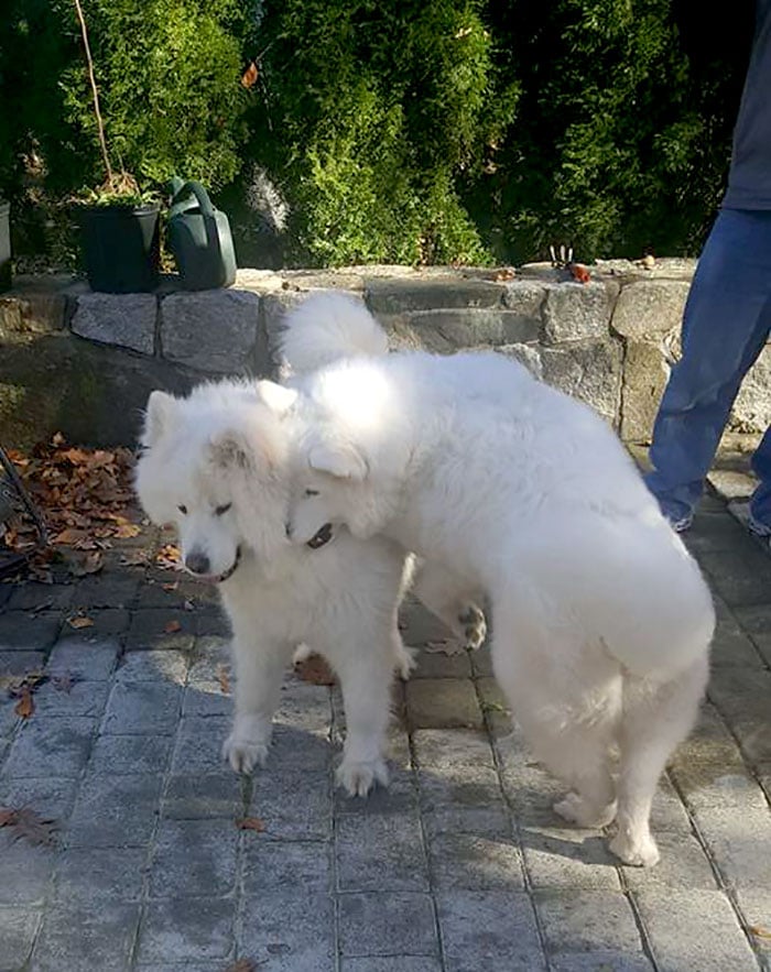 Το αξιολάτρευτο δίδυμο δεν μπορούσε να σταματήσει τα χάδια και τις αγκαλιές με την ιδιοκτήτρια να παρατηρεί: «Εκείνη την ημέρα, είχε περισσότερη ενέργεια από ποτέ και έτρεχε στην αυλή μαζί της. Αυτό είναι το πνεύμα της φιλίας και της αγάπης.»