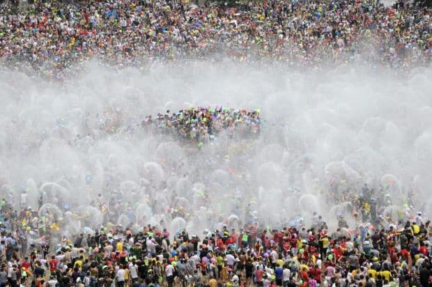 16. Οι άνθρωποι συμμετέχουν στο ετήσιο φεστιβάλ με το νερό να εκτοξεύεται με αφορμή το νέο έτος της μειονότητας Dai.
