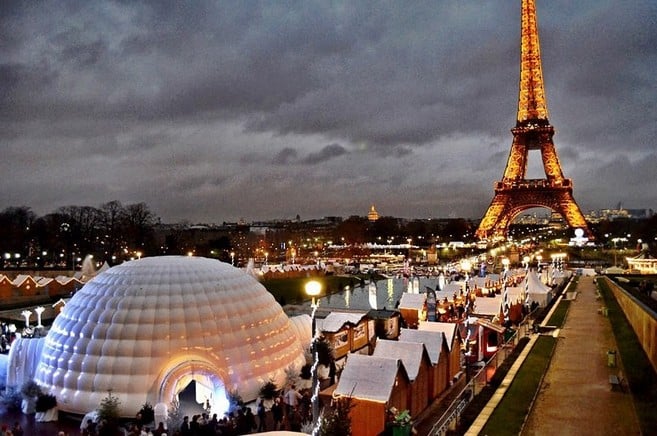 Περίπου 100 ξύλινα σπιτάκια παίρνουν τη θέση τους κατά μήκος του πεζοδρομίου της διάσημης λεωφόρου και προσφέρουν χειροποίητα δώρα, γλυκά και ποτά. Σε ειδυλλιακή τοποθεσία, με θέα τον Πύργο του Άιφελ, θα βρείτε την αγορά Trocadéro, που αποτελεί μέρος του ομώνυμου θεματικού χριστουγεννιάτικου χωριού, που κατακλύζεται κάθε χρόνο από μικρούς και μεγάλους (15/11-04/01).