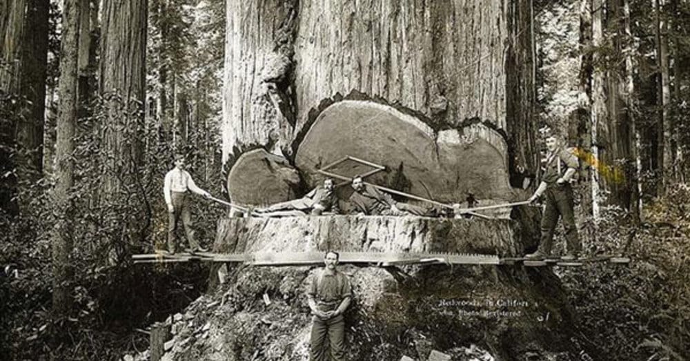 #8 1915: Ξυλοκόποι ρίχνουν ένα τεράστιο δέντρο στην βορειοδυτική Καλιφόρνια.