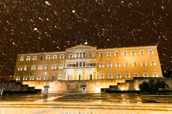 Εντυπωσιακές φωτογραφίες από την χιονισμένη, νυχτερινή Αθήνα δημοσίευσε το πρακτορείο SOOC και ο φωτογράφος Alex Grymanis.