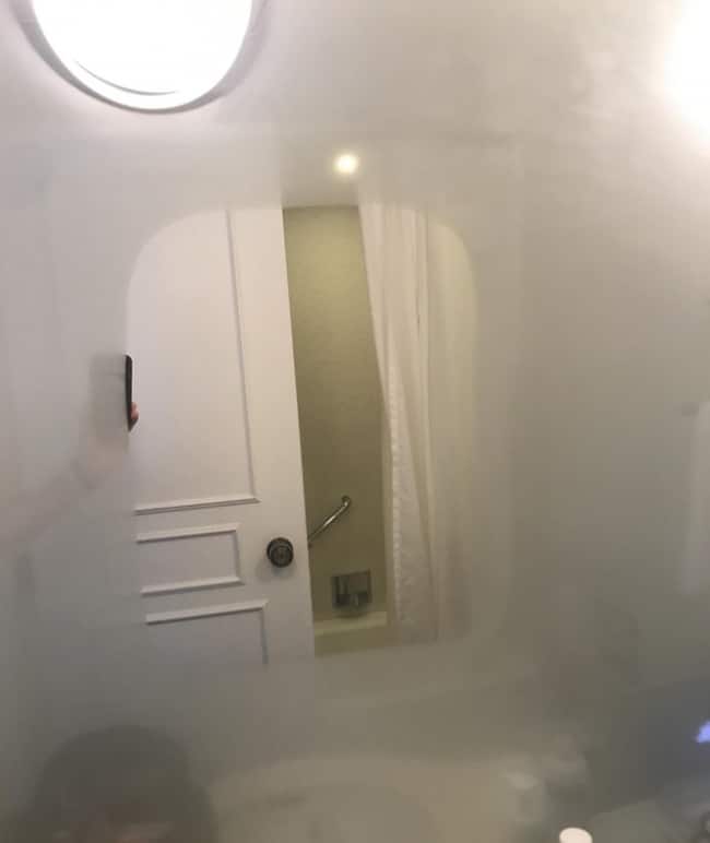 Αυτός ο καθρέπτης έχει ένα θερμαινόμενο κομμάτι που δεν θολώνει από τους ατμούς.