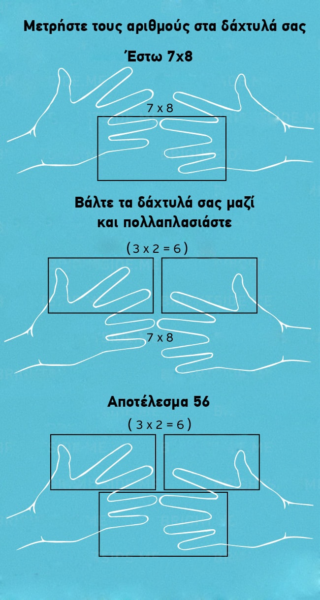 Πολλαπλασιάστε με το 6,7,8,9 μόνο με τα δάχτυλά σας