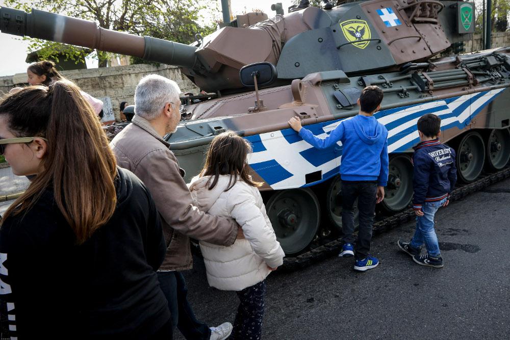 Ένα επετειακό άρμα Leopard 1A5, που άνοιξε ως σημαιοφόρο τη φετινή παρέλαση των μηχανοκίνητων τμημάτων της 25ης Μαρτίου.