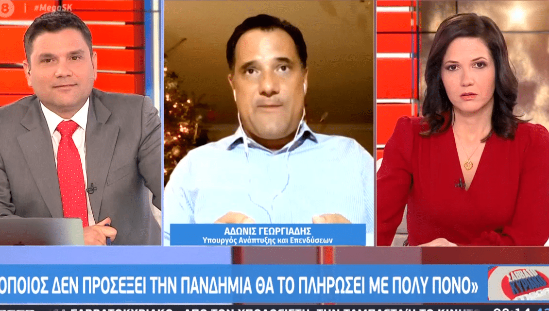 Στην εκπομπή MEGA Σαββατοκύριακο μίλησε ο υπουργός Ανάπτυξης και Επενδύσεων Άδωνις Γεωργιάδης, σχετικά με την απόφαση για νέο lockdown και τα προβλήματα που αυτή δημιουργεί, το πώς λειτούργησε το click away, τι θα γίνει με την εστίαση, αλλά και τι πρέπει να περιμένουμε από εδώ και πέρα.