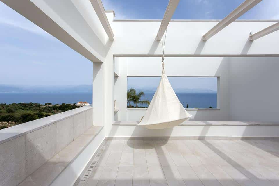 Η αγάπη των ενοίκων για την ηλιόλουστη μεσσηνιακή γη οδήγησε τους αρχιτέκτονες να δώσουν έμφαση στους υπαίθριους χώρους και στη σχέση τους με το φυσικό τοπίο.
