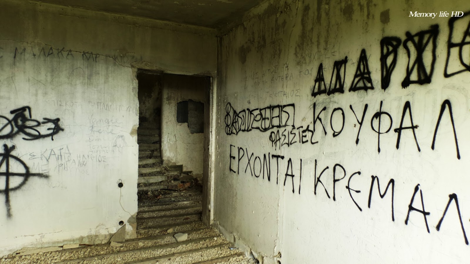Μπήκαμε στην βίλα με κάποια επιφύλαξη από την πλαϊνή πόρτα και περιηγηθήκαμε στον ισόγειο χώρο, τον όροφο και τέλος στο υπόγειο του κτηρίου.