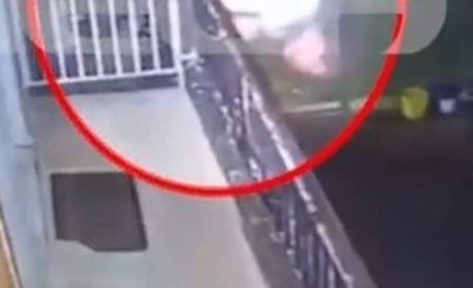 Η κάμερα ασφαλείας του σπιτιού του καταγράφει μία από τις πιο ατυχείς στιγμές της ζωής του. Ο άτυχος άντρας χάνει την ισορροπία του στα κάγκελα του μπαλκονιού και πέφτει από ύψος στο κενό. Στόχος του, όπως διαπιστώθηκε, ήταν να δει πού βρισκόταν ο σκύλος του. Χωρίς να το καταλάβει, λίγο έλειψε να χάσει τη ζωή του.