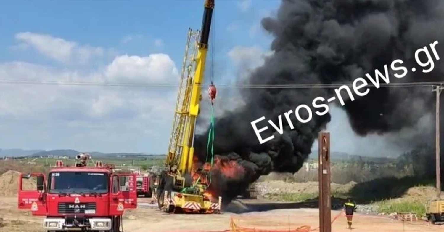 Αλεξανδρούπολη: Γερανός «χτύπησε» σε καλώδια της ΔΕΗ και πήρε φωτιά – Στην εντατική ο χειριστής του