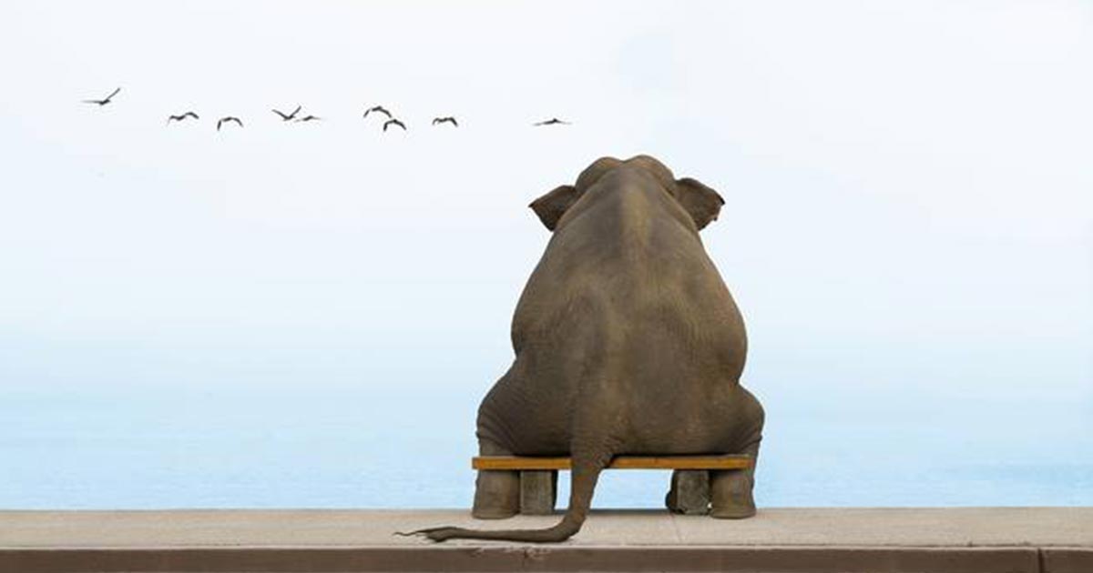 Χωρίς να πολυ-ενοχληθεί, ο ελέφαντας κουνά λίγο τον ώμο του, και ξάφνου, όλα τα μυρμήγκια πέφτουν κάτω.. εκτός από ένα, που με τη βία κρατιέται στον σβέρκο του.