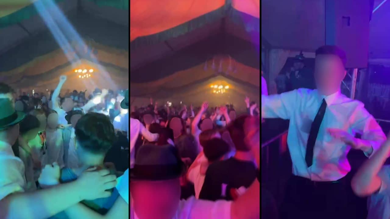 Η παρέα τραγουδά το «L’amour Toujours» αλλά κάποιοι ακούγονται να τραγουδούν το ναζιστικό σύνθημα «Γερμανία για τους Γερμανούς – οι ξένοι έξω» στη θέση των στίχων.