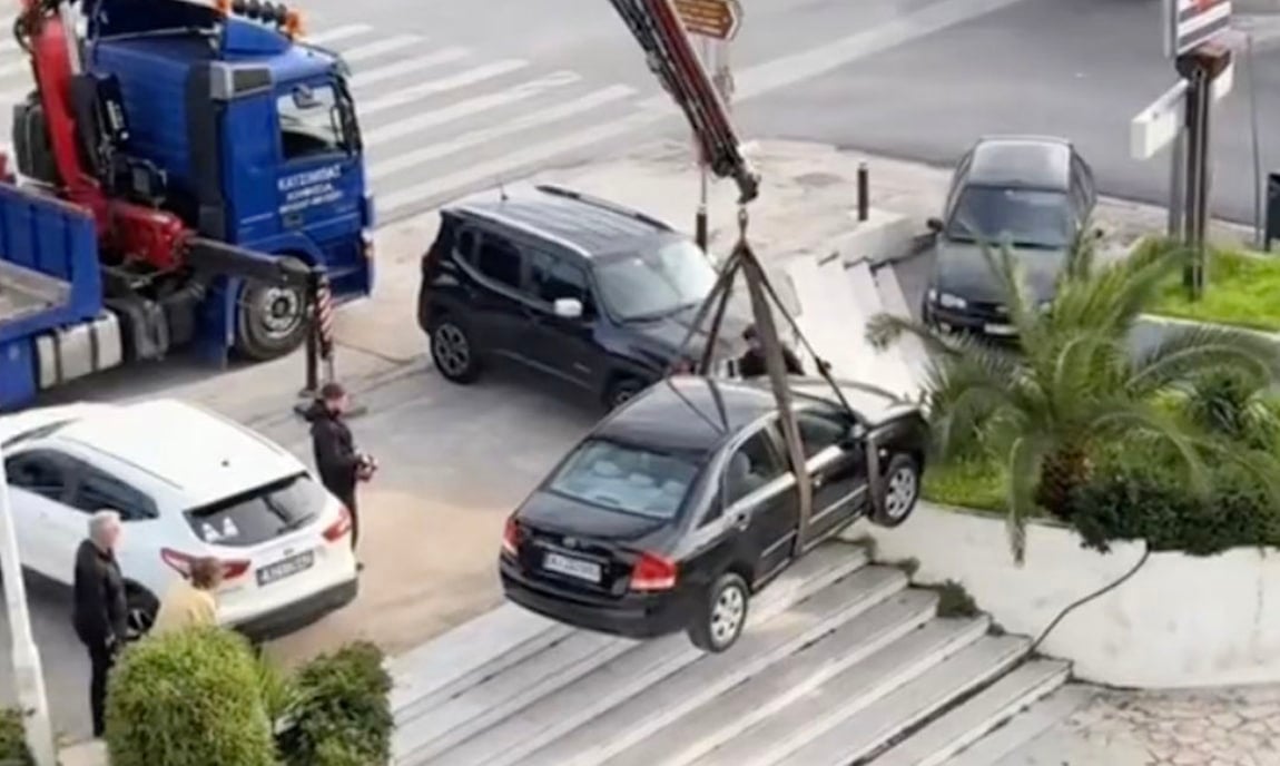 Μάλιστα, λόγω του πώς είναι διαμορφωμένος ο χώρος, η απομάκρυνση δεν μπορούσε να γίνει με συμβατικό τρόπο, με αποτέλεσμα ο γερανός να χρησιμοποιήσει ιμάντες για την ανύψωση του αυτοκινήτου.