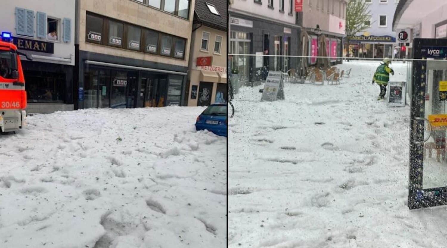 Μια ισχυρή καταιγίδα που συνοδεύτηκε από χαλάζι ήταν αρκετή να μετατρέψει το Ρόϊτλινγκεν στη Γερμανία σε χειμερινό τοπίο εν μέσω καλοκαιριού.
