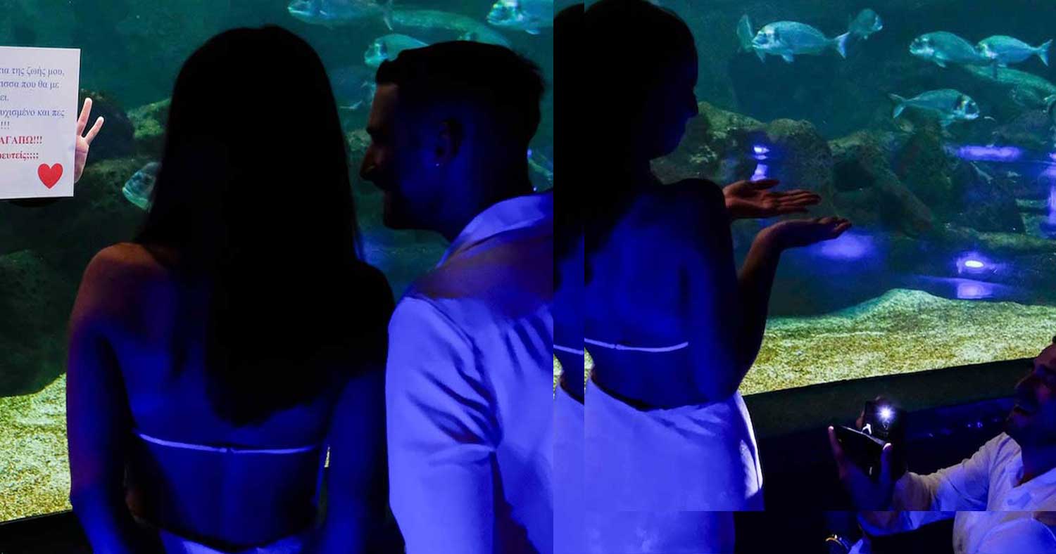 Ο νεαρός με τη βοήθεια ενός δύτη επέλεξε το ενυδρείο του Ηρακλείου στη Κρήτη για να κάνει πρόταση γάμου στην αγαπημένη του.