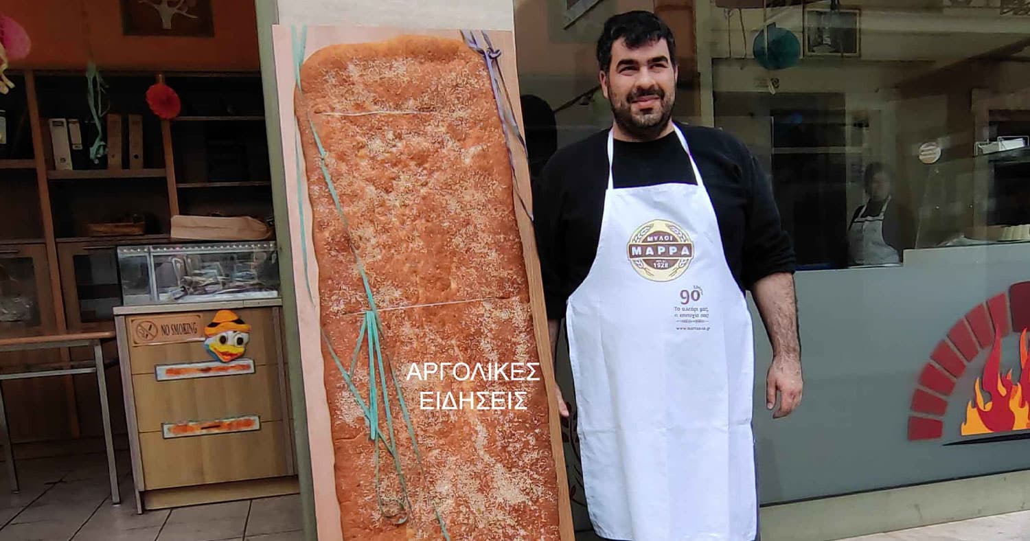 Το αρτοποιείο του Δημήτρη Παπαδόπουλου στην Πρόνοια Ναυπλίου έφτιαξε λαγάνα 16 κιλών και μήκους 1 μέτρο και 80 εκατοστά για την οποία χρησιμοποίησε αλεύρι και σουσάμι.