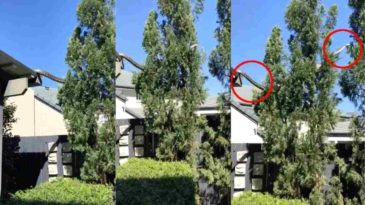 Βίντεο που προκαλεί τρόμο και ανατριχίλα κατέγραψε τη στιγμή που ένας πύθωνας μήκους 5 μέτρων γλιστρά πάνω από τη στέγη του σπιτιού μιας οικογένειας στην Αυστραλία την ώρα που τα μέλη της απολαμβάνουν το μεσημεριανό τους.