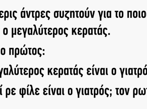 Τέσσερις άντρες συζητούν για το ποιος είναι ο μεγαλύτερος κερατάς