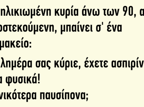 Μια καλοστεκούμενη κυρία άνω των 90 μπαίνει σε ένα φαρμακείο