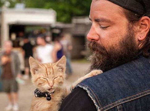 Ένας μοτοσικλετιστής βρήκε στο δρόμο του ένα γατάκι με εγκαύματα και το πήρε μαζί του στο ταξίδι του.