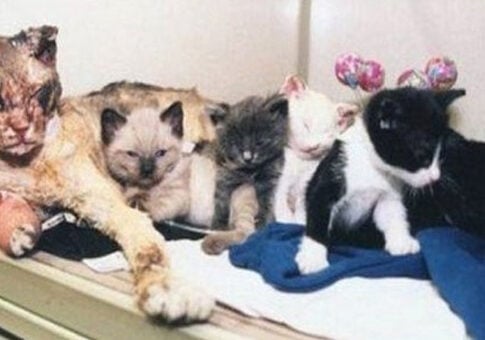 Η ηρωική γάτα που πήδηξε 5 φορές στη φωτιά για να σώσει τα μικρά της (βίντεο)