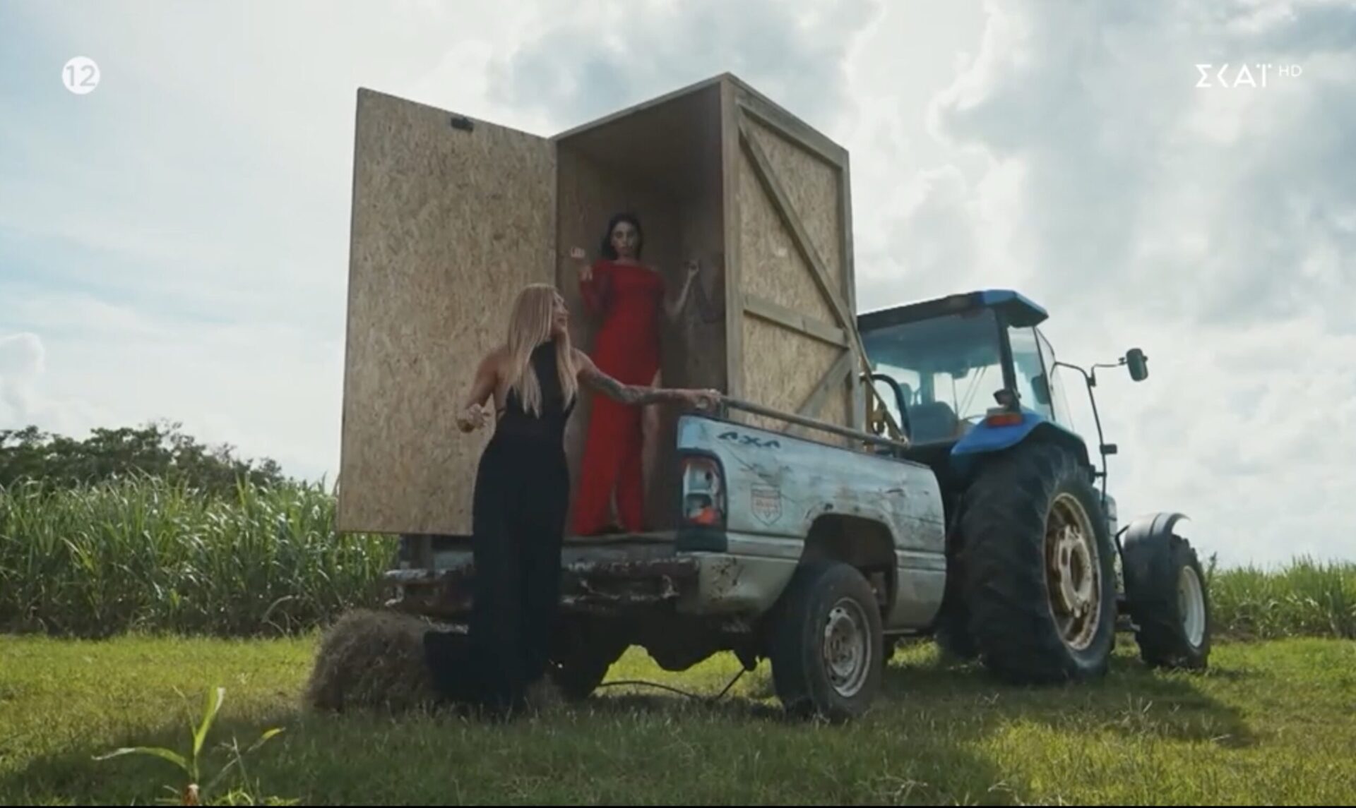Το κουτί άνοιξε, λοιπόν, την ώρα που η Μαρία Καλλάβρια έφτιαχνε το μακιγιάζ της ενώ η Δήμητρα Αλεξανδράκη προσπαθούσε να στρώσει το μακρύ, κόκκινο φόρεμα της. «Χριστέ μου, που είμαστε;» αναφώνησε, έντρομη, η εντυπωσιακή τραγουδίστρια για να συνεχίσει λέγοντας: «Κορίτσια, τι συμβαίνει; Δήμητρα, Μαρία, ελάτε! Ελάτε, δεν βλέπω κάτι! Δεν υπάρχει κίνδυνος».