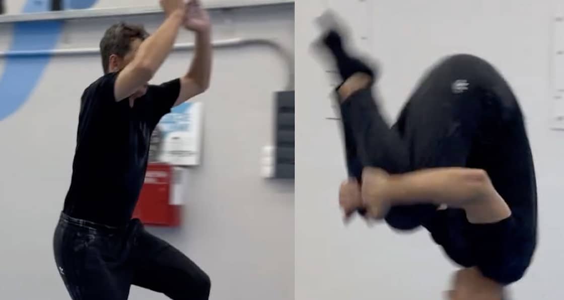 Το ενδιαφέρον της υπόθεσης είναι ότι ο σταρ, ακολουθεί ένα πρόγραμμα ενόργανης γυμναστικής και μάλιστα το εκτελεί με απίστευτη άνεση!