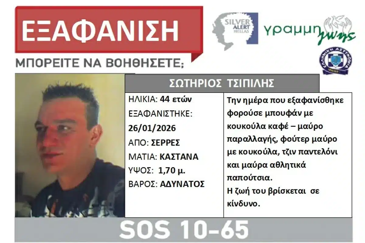 Ο Σωτήριος Τσιπιλής, 44 ετών, εξαφανίστηκε από το σπίτι του, στις Σέρρες, την 26η Ιανουαρίου 2026.
