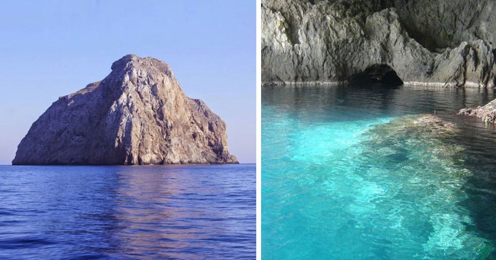 Ένας ξερός βράχος που ορθώνεται μοναχικός στη μέση του πελάγους μπορεί να κρύβει μια σπηλιά με καταγάλανα νερά, σπάνια λουλούδια και πτηνά.