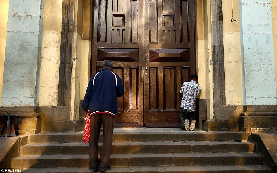 Όσοι δεν μπορούν να μπουν στον καθεδρικό ναό, προσεύχονται στην πόρτα.