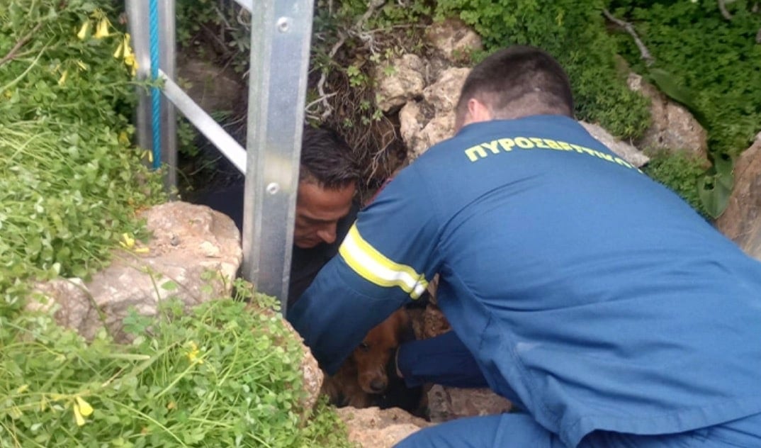 Επιχείρηση διάσωσης σκύλου που βρέθηκε σε πηγάδι βάθους 15 μέτρων στο Άνω Μάννα της Σύρου στήθηκε από την Πυροσβεστική.