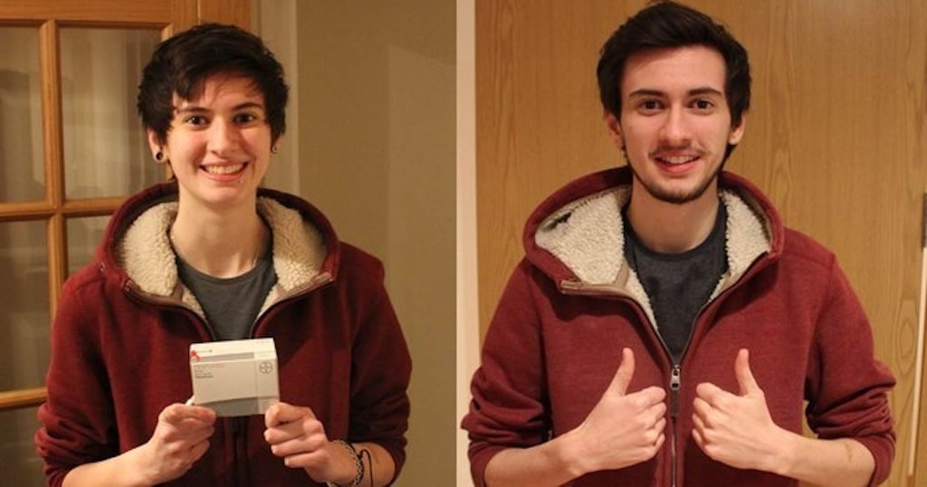Ο φοιτητής και δημοφιλής στο YouTube, Jamie Raines, ήταν 18 ετών, όταν αποφάσισε να ξεκινήσει να παίρνει τεστοστερόνη, μια ορμόνη που βοηθάει τους διεμφυλικούς άντρες να γίνουν πιο αρρενωποί και να γίνει πιο τραχιά η φωνή τους. Εδώ τον βλέπουμε την πρώτη μέρα της αγωγής, κρατώντας την φάρμακο.