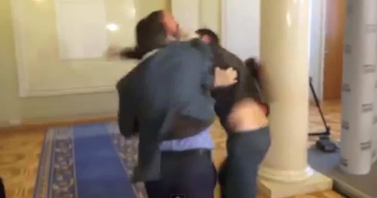 Απίστευτο ξύλο μπροστά στις κάμερες, «έπαιξαν» δύο Ουκρανοί βουλευτές στους διαδρόμους του κοινοβουλίου τους.