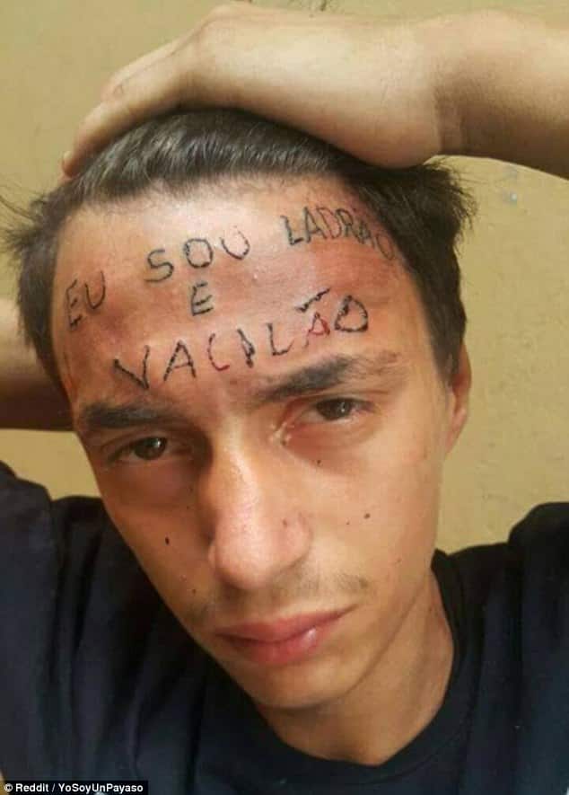 Δύο άνδρες στη νοτιοανατολική Βραζιλία συνελήφθησαν και κατηγορούνται για βασανιστήρια καθώς έκαναν στο μέτωπο ενός εφήβου τατουάζ με τη φράση «Είμαι κλέφτης και αποτυχημένος».