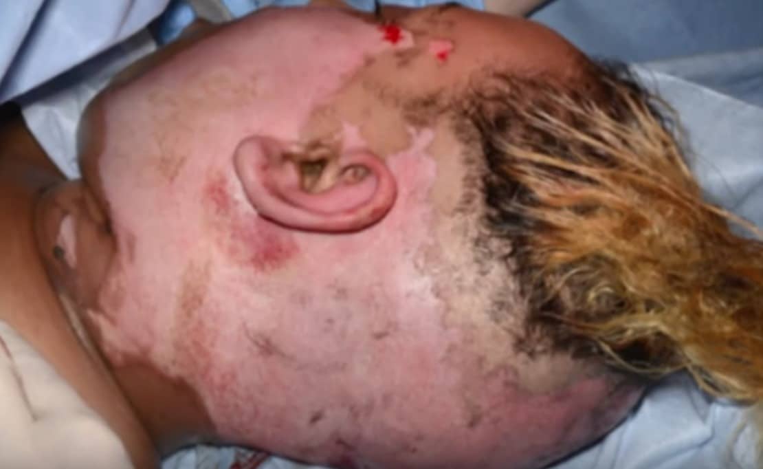 Έμεινε γεμάτη ουλές και αποχρωματισμό του δέρματος.