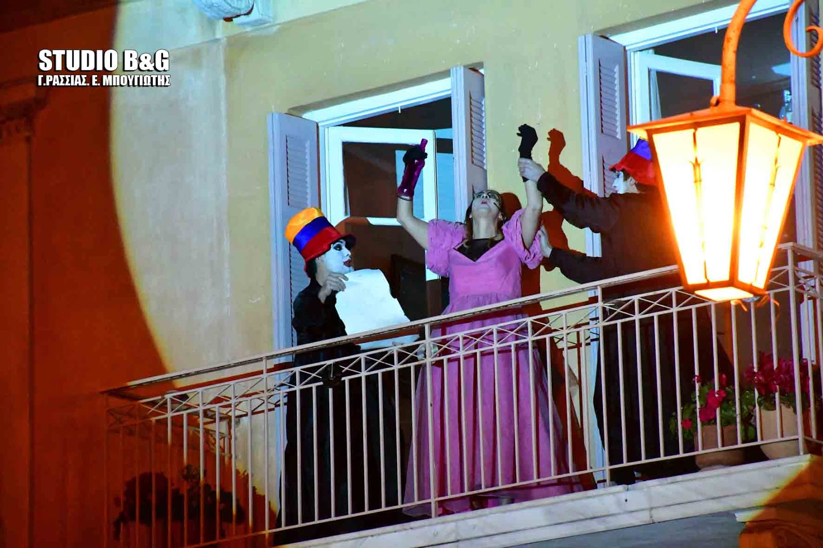 Με θεατρικές ομάδες, καρναβαλιστές του δρόμου, ξυλοπόδαρους και υπό τους ήχους της ταραντέλας ξεκίνησε το μαγικό ταξίδι της Commediadell’Arte στο Βενετσιάνικο καρναβάλι του Δήμου Ναυπλιέων το Σάββατο 15 Φεβρουαρίου 2018.