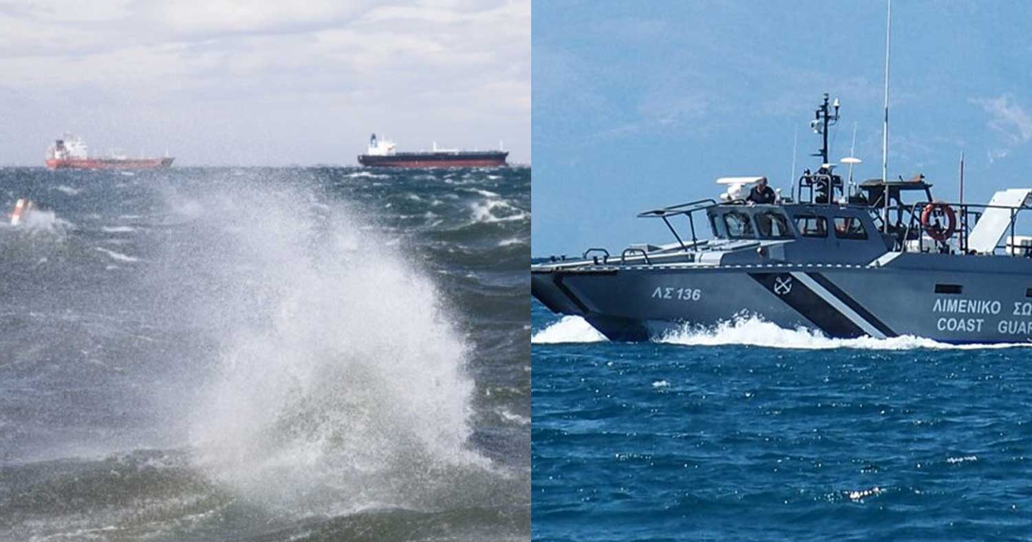 Στην περιοχή όπου σημειώθηκε το ναυάγιο επικρατεί ιδιαίτερη θαλασσοταραχή και τα κύματα φτάνουν τα τρία μέτρα ύψος.