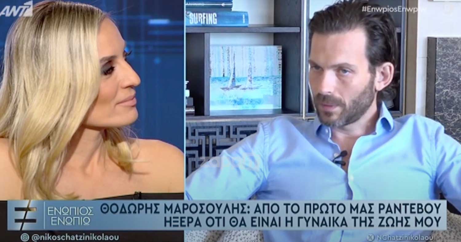 «Είχαμε πάει για φαγητό στο κέντρο της Αθήνας όπου, με το που ήρθε, ξεκινήσαμε να μιλάμε και τελείωσε η βραδιά χωρίς να υπάρχει κανένας άλλος στην παρέα μας. Από εκείνη την παρέα ήξερα ότι θα είναι η μητέρα των παιδιών μου, η σύντροφος μου, η γυναίκα που θα με ακολουθήσει για το υπόλοιπο της ζωής μου», είπε αρχικά ο Θοδωρής Μαροσούλης.