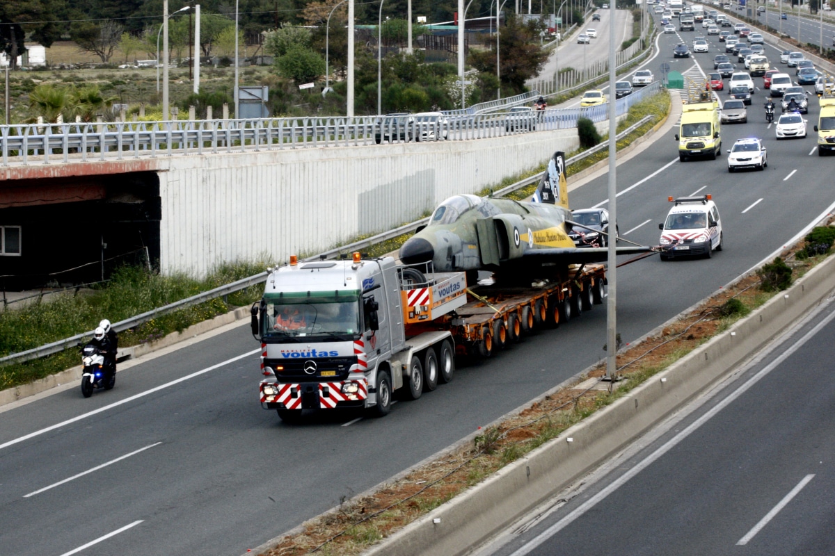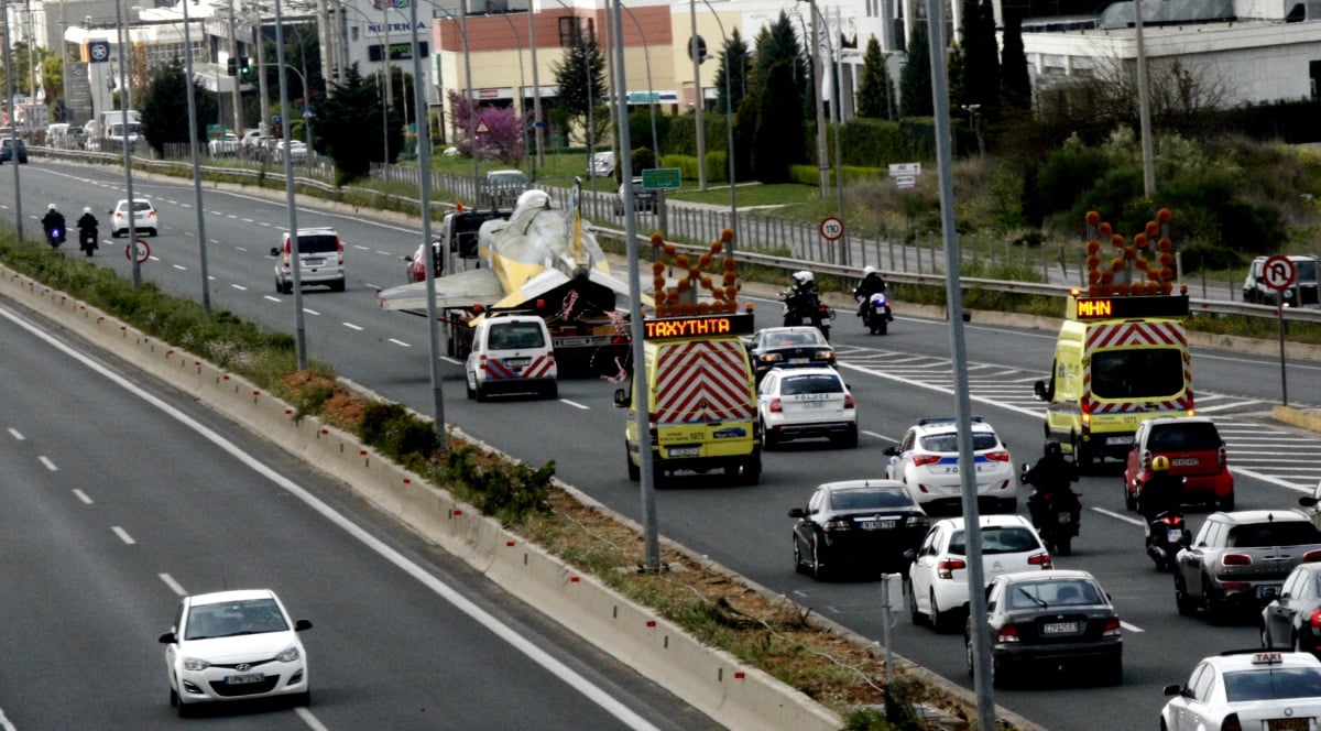 Αλλά μάλλον όσοι δεν το γνώριζαν ή επέλεξαν να μην αλλάξουν διαδρομή, αποζημιώθηκαν. Γιατί η εικόνα του πολεμικού αεροπλάνου RF-4E στην εθνική οδό ήταν άκρως εντυπωσιακή.