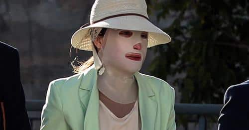 - Ιωάννα: Όλα τα ελαστικά ενδύματα στο σώμα τα φοράω όλη τη μέρα. Μόνο για μία ώρα που κάνω το μπάνιο μου και φοράω τις κρέμες μου επιτρέπεται να τις βγάζω. Μόνο τα δάχτυλά μου είναι ελεύθερα. Προβλέπεται να φοράω σίγουρα 7 χρόνια τη μάσκα. Το ποσοστό αναπηρίας σύμφωνα με δημόσια επιτροπή, είναι πάνω από 90%. Αυτή τη στιγμή είμαι σε άδεια ασθενείας από την εργασία μου και παίρνω ένα επίδομα από το κράτος.(…)