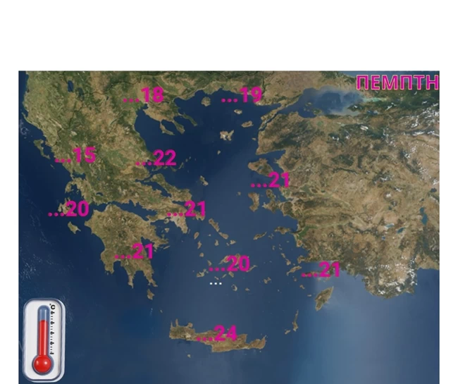 Ο μετεωρολόγος συνοδεύει την ανάρτησή του με μια φωτογραφία από τις θερμοκρασίες που αναμένονται τις επόμενες ημέρες στη χώρα μας, ιδιαίτερα την Πέμπτη, την ημέρα κορύφωσης του κύματος ζέστης. Πρόκειται για ενδεικτικές τιμές.
