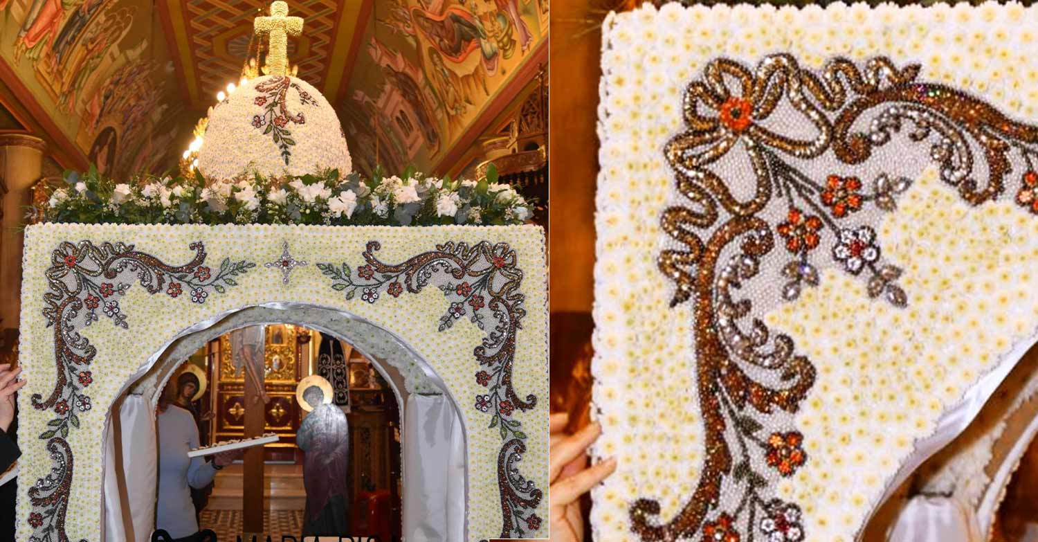 Για είκοσι συναπτά έτη οι οι γυναίκες της Ουρανούπολης στολίζουν έναν μοναδικό Επιτάφιο με λουλούδια και πέρλες πάνω σε υπέροχα βυζαντινά χρώματα και σχέδια από βιβλία του Αγίου Όρους.
