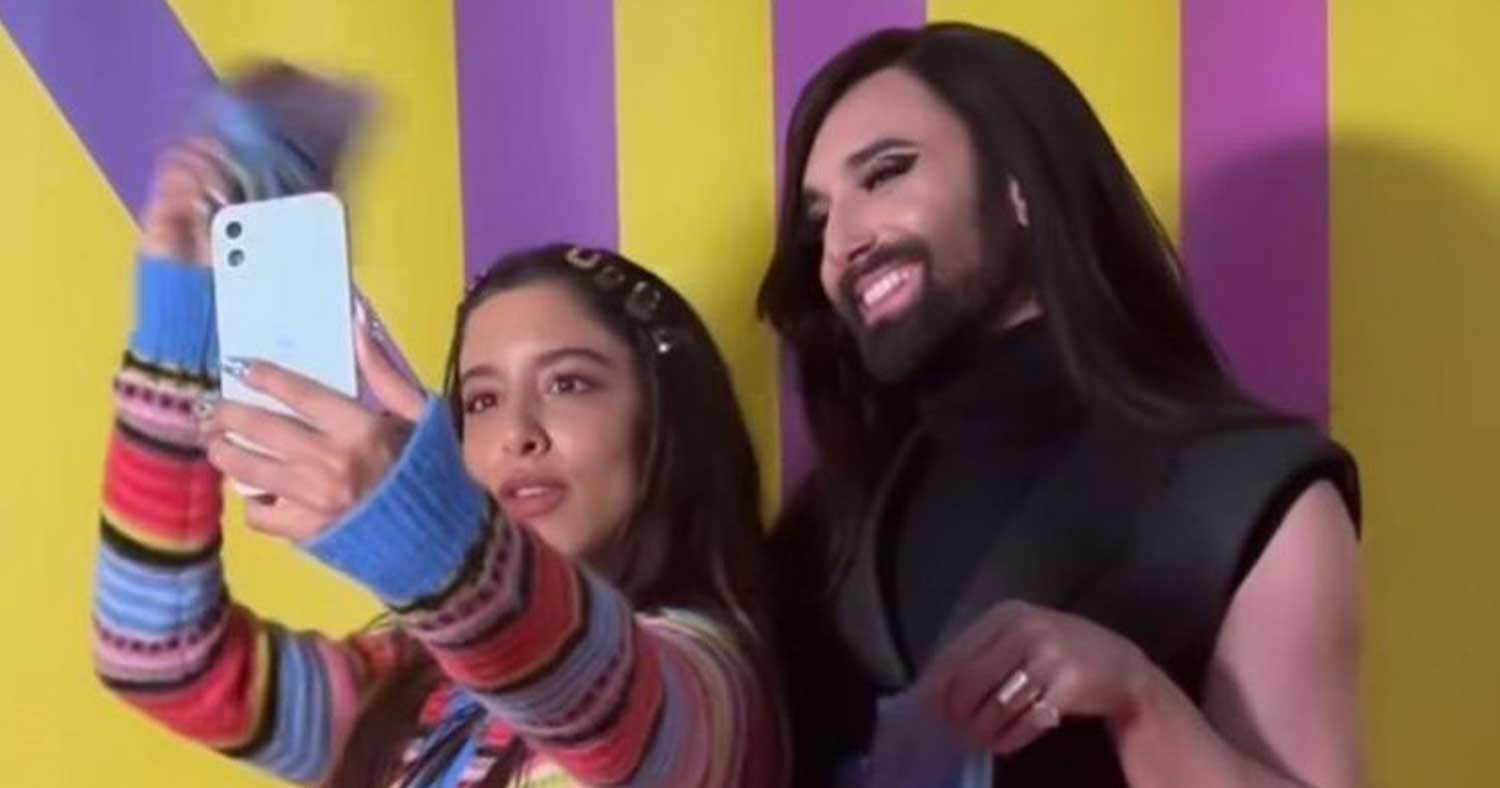 Στο νέο βίντεο που ανέβηκε στο Tik Tok, η Ελληνίδα εκπρόσωπος μαθαίνει καλαματιανό στην Κοντσίτα Βουρστ και χορεύουν μαζί χαμογελαστές.