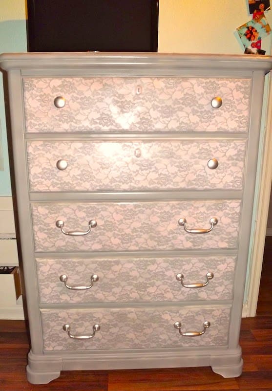Η μπλόγκερ Kelsey Johnson του «Design-Innovate-Create» μας έδειξε ένα έξυπνο τρόπο για να αλλάξουμε την όψη της παλιάς μας συρταριέρας, χρησιμοποιώντας απλά βαφή σε σπρέι και δαντέλα.