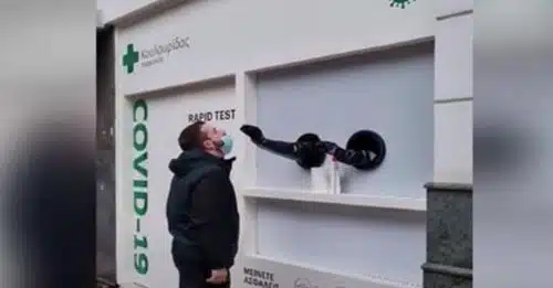Viral έχουν γίνει οι φωτογραφίες και τα βίντεο ενός φαρμακείου στα Τρίκαλα που βρήκε τον δικό του τρόπο για να νιώθουν όλοι ασφαλείς, και οι πελάτες που κάνουν το rapid test, αλλά και οι εργαζόμενοι που το διενεργούν.